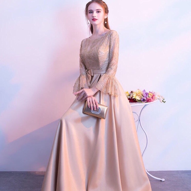 Gold Wedding Engagement Formal Elegant Long Loose Night Party Gala Dinner Dress Shopee Malaysia