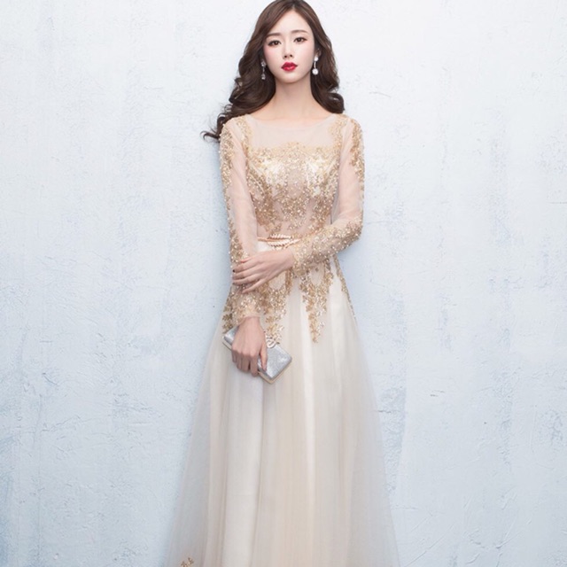Wedding Modern Gold Evening Gala Dinner Engagement Long Dress Shopee Malaysia