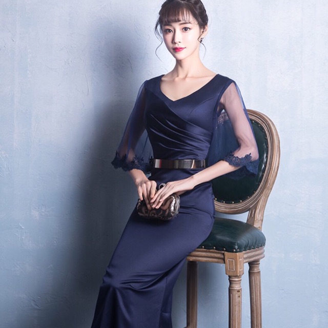 Navy Blue Slim Long Gala Dinner Night Party Wedding Engagement Formal Dress Shopee Malaysia